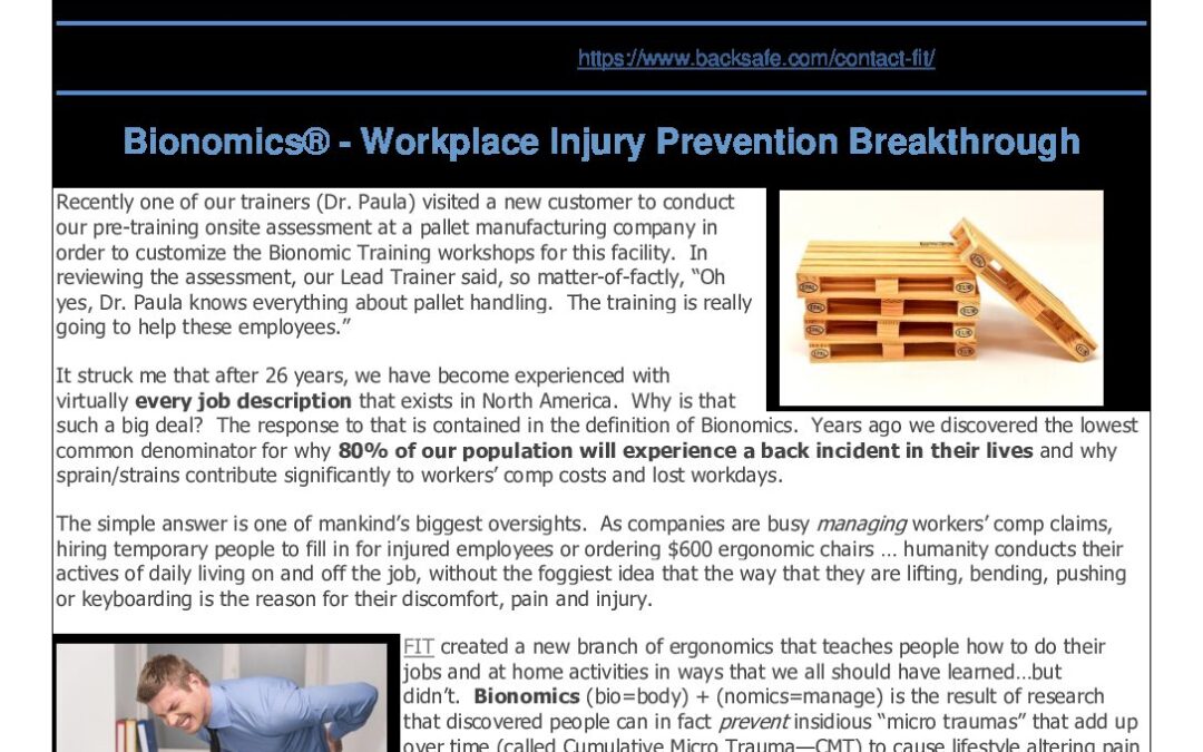 • Customized Backsafe® Training for Industrial Workers