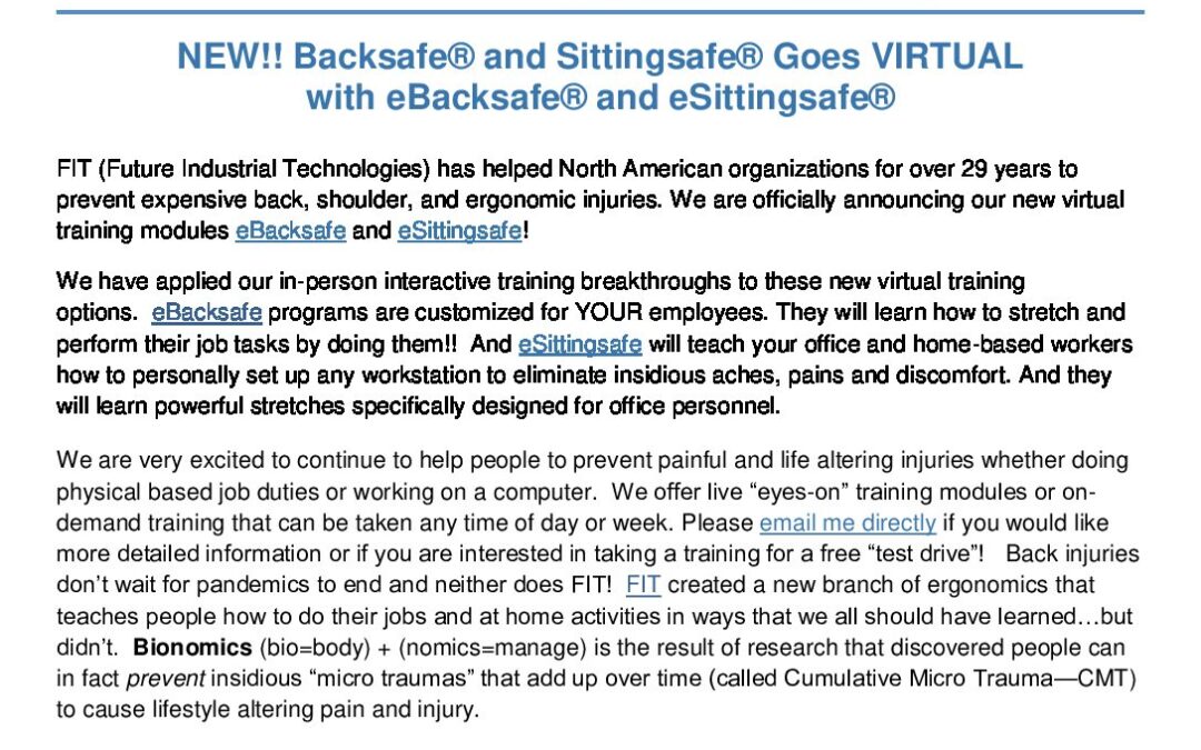 • NEW! eSittingsafe® Online Ergonomic Class